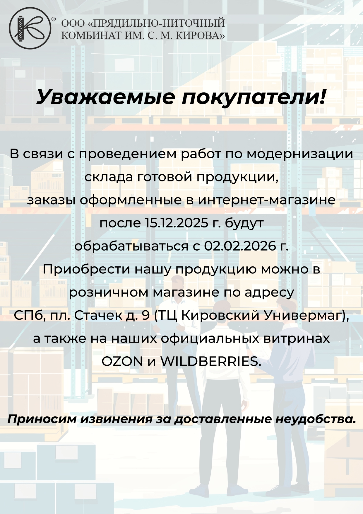 Подтверждаю свое согласие на обработку персональных данных в соответствии с Политикой обработки персональных данных ООО «ПНК ИМ. КИРОВА» на сайте https://nitki-kirova.ru