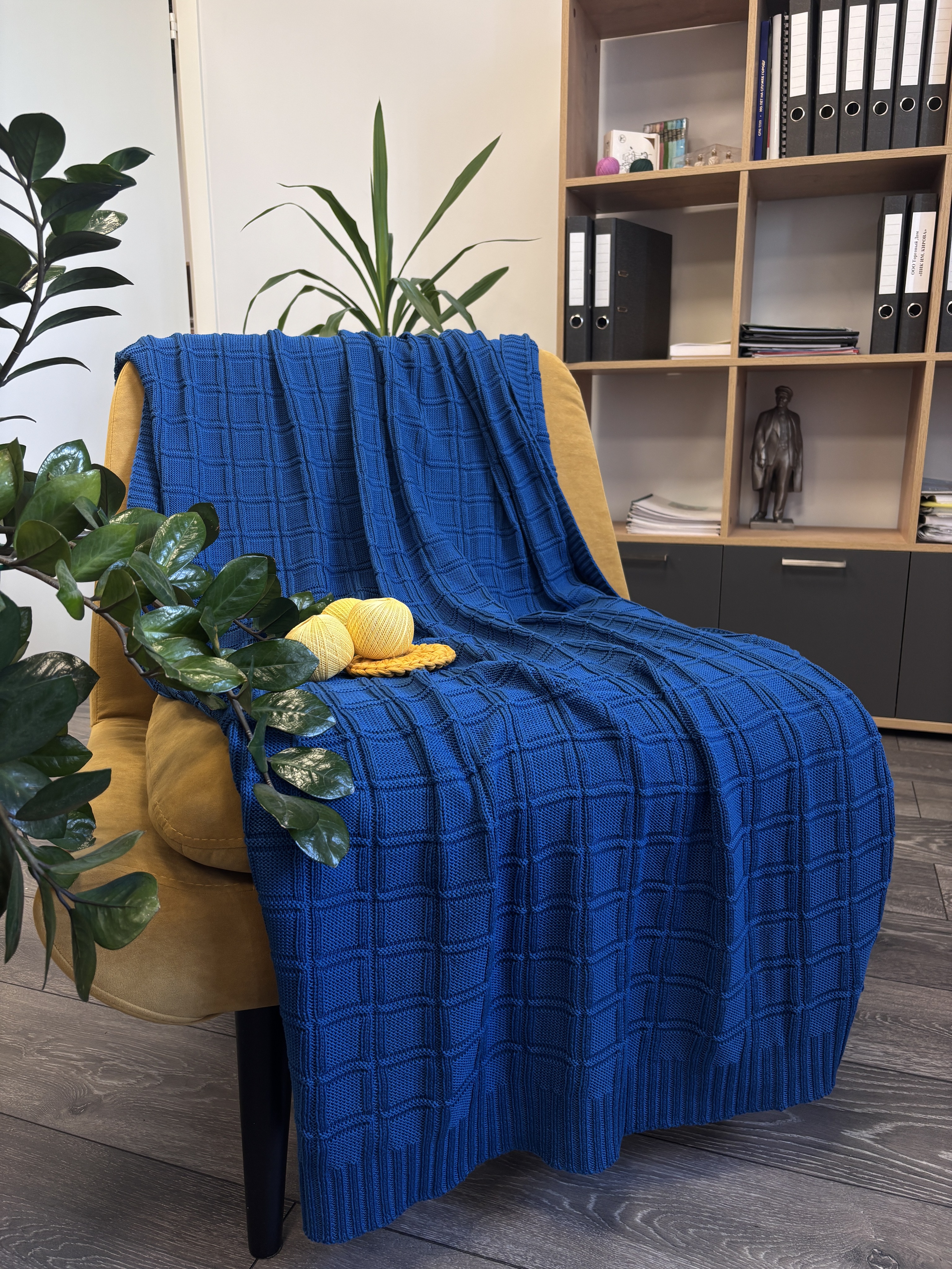 Наш уютный вязаный плед — идеальное решение для прохладных вечеров дома, отдыха на природе или украшения интерьера. Благодаря своей уникальной текстуре и приятному ощущению на ощупь, он подарит вам тепло и уют.